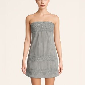 Cynthia Steffe Strapless Gray White Striped Mini Dress NWT Size 2 Cotton A-Line