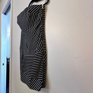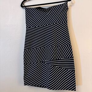 Cynthia Steffe Striped Gold Zipper Strapless Sheath Dress Dark Navy White Size 6