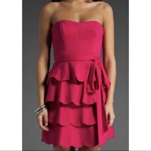 Cynthia Steffe Sz 8 Pink Tiered Scalloped Layered m Ponte Knit Strapless Dress