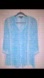 Chic blouse with teal and white pattern. Features button-down front and 3/4 sleeves. Ideal for casual wear.