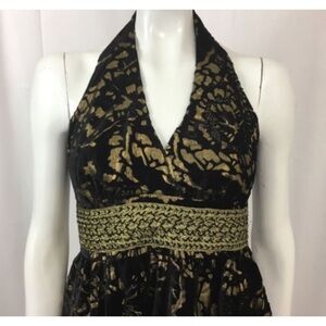 Cynthia Steffe Women's Black Gold Velvet Burnout Halter Dress Size 6
