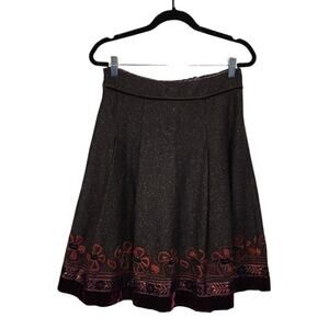 Cynthia Steffe Vintage Wool Blend Midi Pleated Skirt Embroidered Women's Size 2
