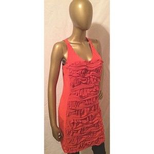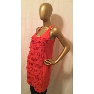 Cynthia Steffe Women Red Dress Shift Sz 6 Silk Sleeveless Ruffle Frayed Tissue