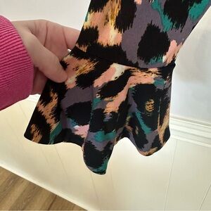 Cynthia Steffe Women’s Long Ruffle Sleeve Animal Print Scoop Neck Dress Sz L GUC