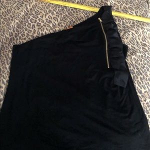 Cynthia Steffe size XL black one shoulder stretch top with gold working zipper