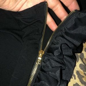 Cynthia Steffe XL black one shoulder stretch gold working zipper & ruffle NWOT