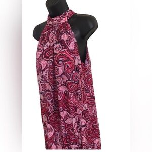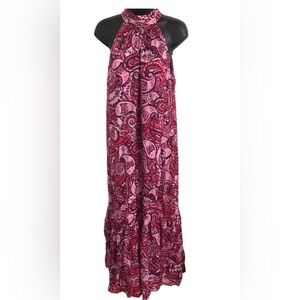 Cynthia Steffe beautiful fuchsia red pink combo silk like tiered halter maxi dress size large new