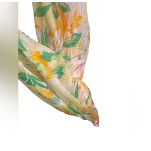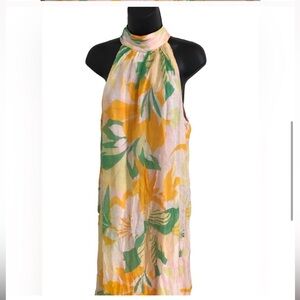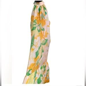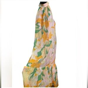 Cynthia Steffe beautiful island green orange yellow tropical palm print sheer like tiered halter maxi dress size XL new