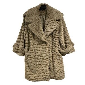 Cynthia Steffe ruffled faux fur beige tan winter coat size medium EUC