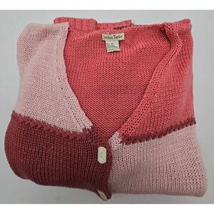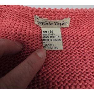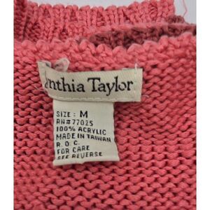 Behold the sweater with the power to confuse and delight! This Cynthia Taylor cardigan is a patchwork masterpiece, perfect for anyone who can't decide between pink or red. It's like wearing a warm hug from a colorblind artist.