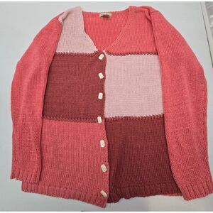 Cynthia Taylor Womens Medium Patchwork Cardigan Sweater 100% Acrylic Pink & Red
