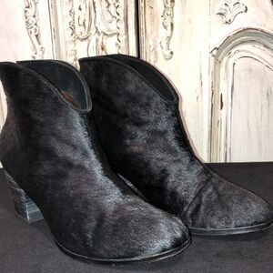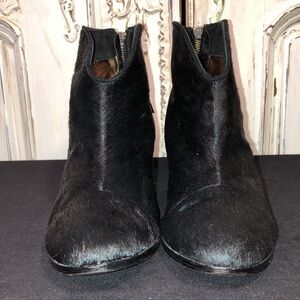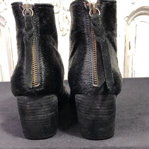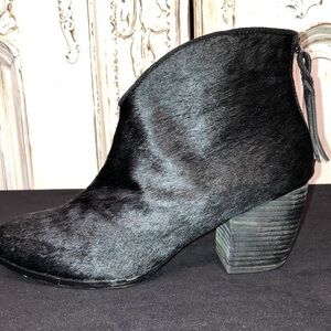 Cynthia Vincent Black Calf Fur 2 1/2” Heel Heel Zip Booties Size 9