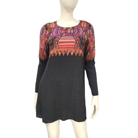 Adorable boho tribal print charcoal black and pink print boho mini dress. lightweight, soft and perfect for summer event. excellent used condition