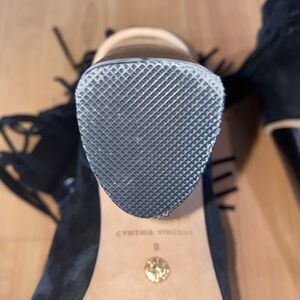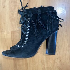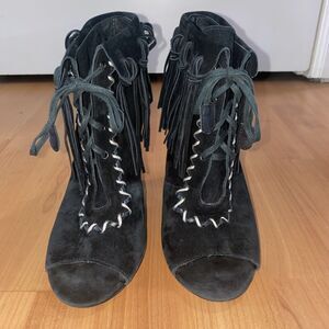 Cynthia Vincent Boots Suede Fringe Booties Open Toe Lace Up Block Heel -Size 8
