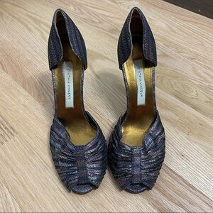 Cynthia Vincent Iridescent Heels Purple Sz 6