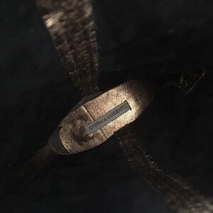 These amazing leather boots by Cynthia Vincent feature the silhouette of a cowboy boot, but with a minimal aesthetic and soft, slouchy leather shaft. Gorgeous darkened metallic bronze. Almond toe. Curved upper shaft. Low heel. Side pull-on straps. Size 8.5. Great condition.