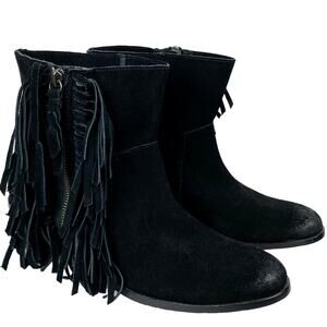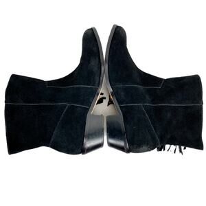 Cynthia Vincent Nibble Fringe Suede Ankle Heeled Bootie in Black, Size 8.5