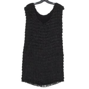 Cynthia Vincent Womens Dress Cap Sleeve Fringe Flapper Girl Black Size Small FH