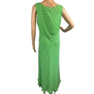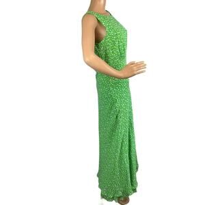 Cynthia howie Women’s Silk Maxi Dress Kelly Green Gray Watercolor Dot Size 8