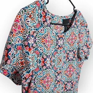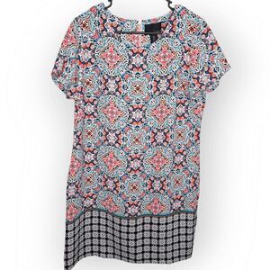 Cynthia Rowley Multicolor Vibrant Geometric Floral Short Sleeve Shift Dress size