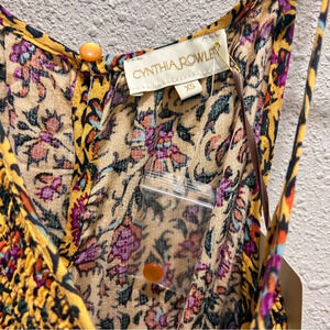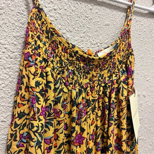 Cynthia Rowley Smocked Neckline Keyhole Back Sleeveless Top Mustard Floral NWT