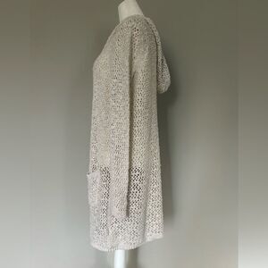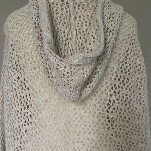 Lightweight sheer knit open front cardigan. Hooded. Beachy vibe. Excellent condition. Size tag missing. Estimated size medium.