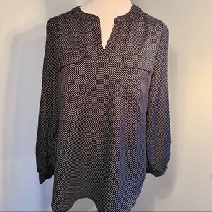 Cynthia Rowley B&W Polka Dot Long Sleeve Henley XL