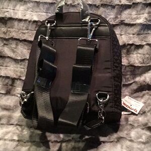 Black quilted backpack comes with credit card holder keychain and crossbody strap. NWT