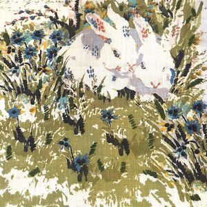 Cynthia Rowley rabbit print with embroidered flowers table runner