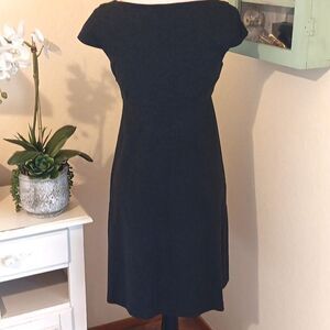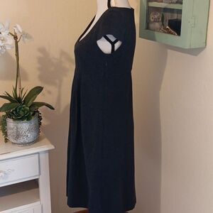 Made in the USA. Chic gray dress by Cynthia Steffe. Soft knit fabric. Cap sleeves, side zip, top lined. Size M measures 34 at chest, 30 under chest. Pockets. Pleats under chest, 36 long from shoulder to hem. Perfect for work. Versatile and stylish.