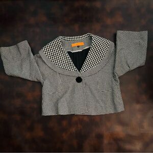 Cynthia Steffe Houndstooth Blazer 1 Button Wide Half Circle Collar Blk/Wht Y2K 8