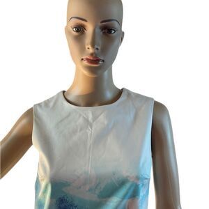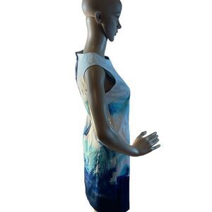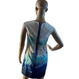 Elevate your wardrobe with the Cynthia Steffe Womens Size 0 Courtney Blue White Wave Sleeveless Shift Dress.