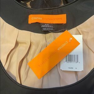 Cynthia Steffe Black Lace Sleeveless Mini Dress; silk flesh colored lining; size small. Exterior is 75% cotton; 25% nylon; interior lining 100% silk. New with tags.