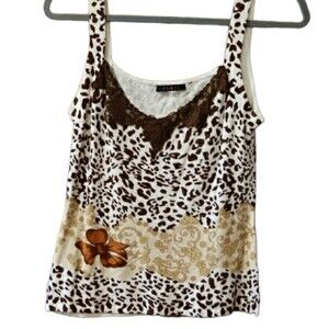 Cypress Animal Print Lace Trim Floral Cami Tank Top LG