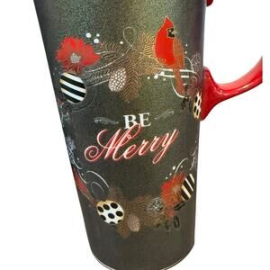 Cypress Home Ceramic Travel Coffee Latte Tea Mug BE MERRY Christmas Cardinal 17