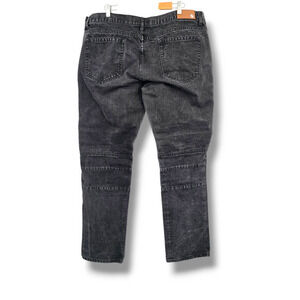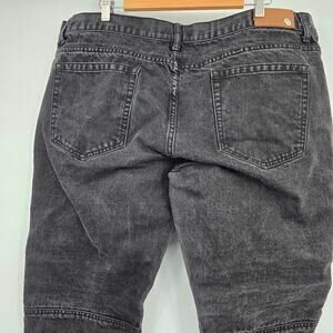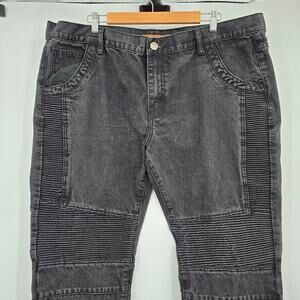 Cyrsp Denim Men's Streetwear Slim Leg Moto Jeans Black Dark Gray Size 42