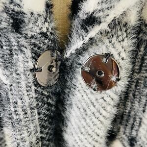 Cyrus Black and White Plaid Midi Jacket Cozy Soft Pockets Coat