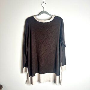 Cyrus Chocolate Brown Sweater Tunic Liquid Knit Soft Colorblock Long Sleeve 2X