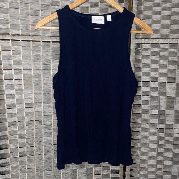 Chic and versatile tank top by Cyrus. Features a ribbed texture and sleeveless design. Ideal for layering or wearing alone.