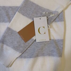 Cyrus Gray White Striped Crew Neck Summer Sweater Size XL Lightweight NWT