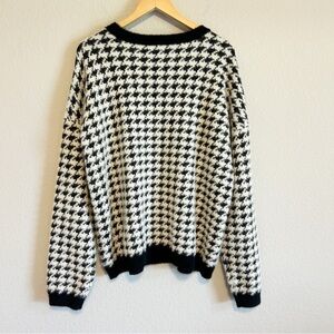 Cyrus Houndstooth Sweater Soft Fuzzy Black and White Relaxed Size XL.