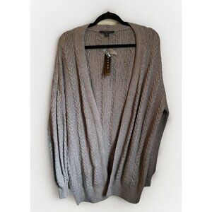 Cyrus Open Front Cable Knit Cardigan Chunky Oversized Duster Gray Knit M, NWT