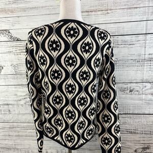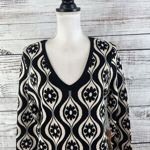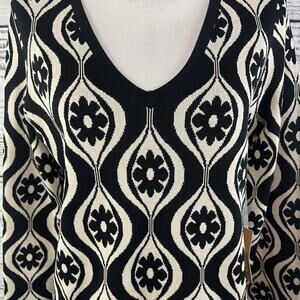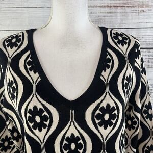 Cyrus Pullover Sweater Top size Medium Black Ivory Floral Motif Stretch Career