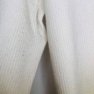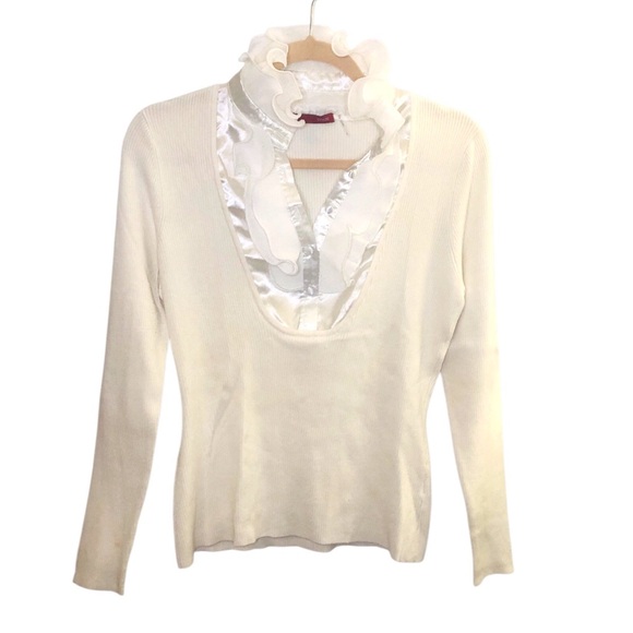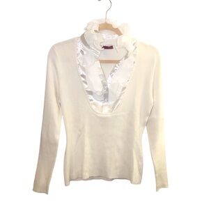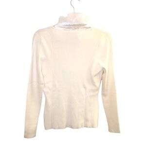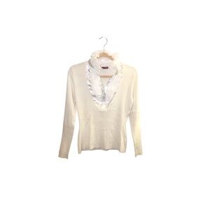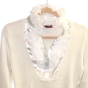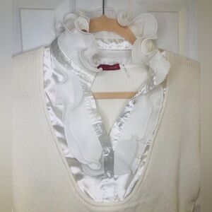 Cyrus Ribbed Cream Sweater with White Ruffled Neck.