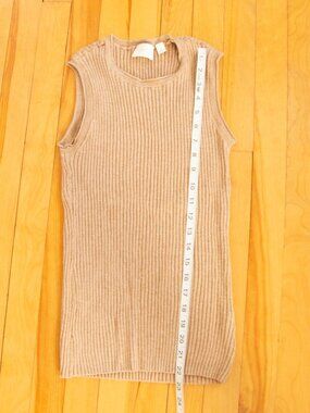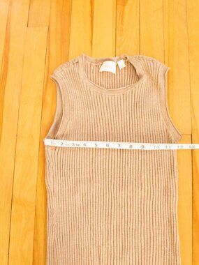 Very cute ribbed tank, lots of stretch. In a tan/brown color. Has a very elegant look to it. Pair it with a cardigan and a skirt for the perfect librarian look, a blazer for that academia vibe. Can easily be dressed up or down. Super basic essential, but lovely! Size Small. Bought new, worn once or twice.
