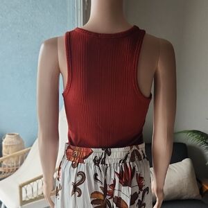 Chic ribbed tank top by Cyrus. Sleeveless design in a rich rust hue. Ideal for versatile styling.
