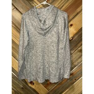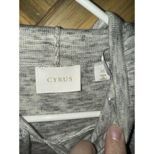 This is a Cyrus hooded sweater in a stylish gray color, designed for women in size medium. The sweater features long sleeves and a hood, making it a cozy and versatile choice for casual wear. It is noted that the sweater runs big, so it may provide a slightly looser fit than expected. Overall, this Cyrus hoodie offers a fashionable and comfortable option for everyday wear.