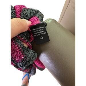 Cyrus Sweater Open Knit 3/4 Sleeve Scoop Neck Pullover Striped Black Pink Large