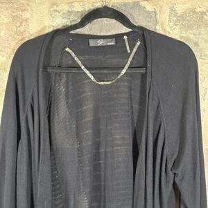 Cyrus Sweater Woman's 2X Black Open Front Striped Minimalist Lightweight