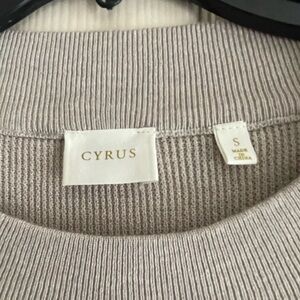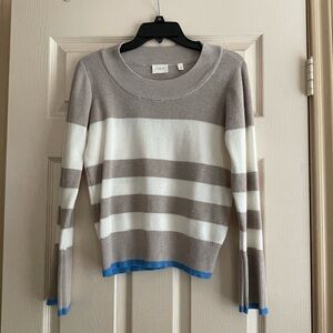 Cyrus Taupe and White Crew Neck Sweater with Striped Design